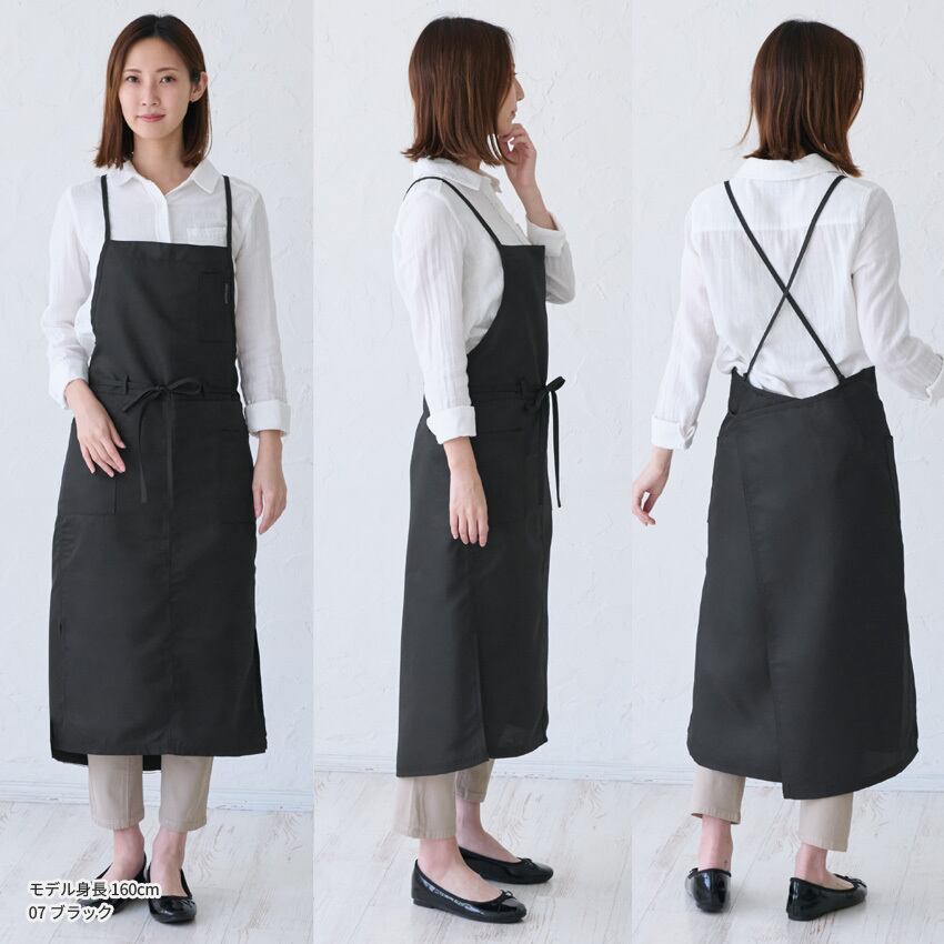 撥水 ロング丈 ラップ エプロン ワンピースエプロン ワンピース はっ水 かわいい おしゃれ 保育士 黒 エプロン カフェエプロン ロング ギャルソン 無地 ギフト サロン レディース