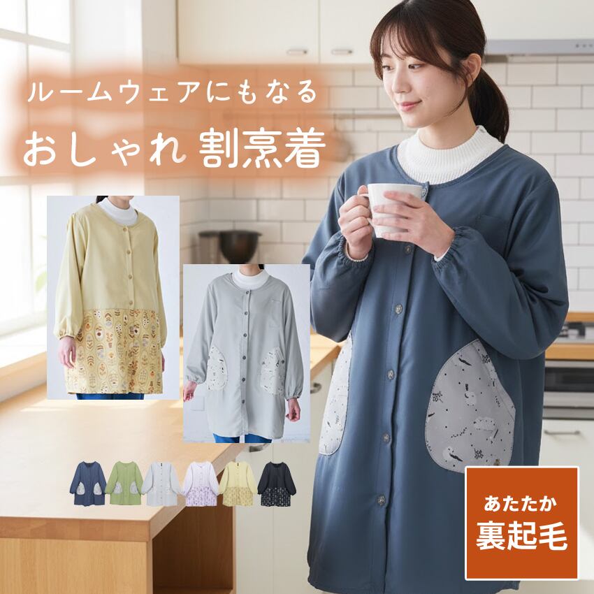※表地は撥水加工、裏地がフリース素材のあったか割烹着。